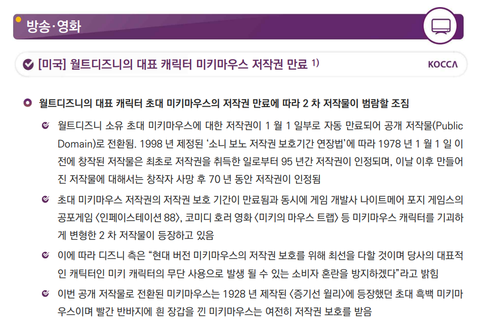짧게나마 저작권이 만료된 디즈니의 미키마우스에 대해서 알아보았습니다.