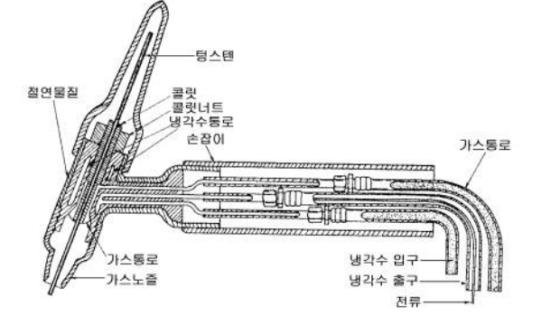 전극으로 사용하는 텅스텐은 내열성이 강해 높은 온도에 잘 견딘다.